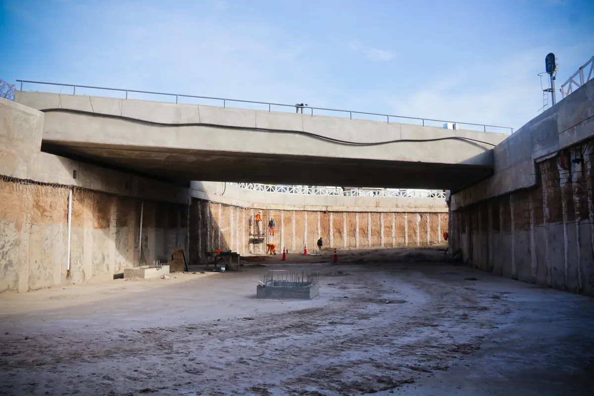Actualmente, ya están montados todos los puentes para que pase el Tren Sarmiento y solo se espera que marquen la traza para los autos, al igual que los laterales del túnel de Paso del Rey. Por otra parte, esta obra funcionará, también, para que la frecuencia del ferrocarril sea mayor, y que aumente la seguridad vial.