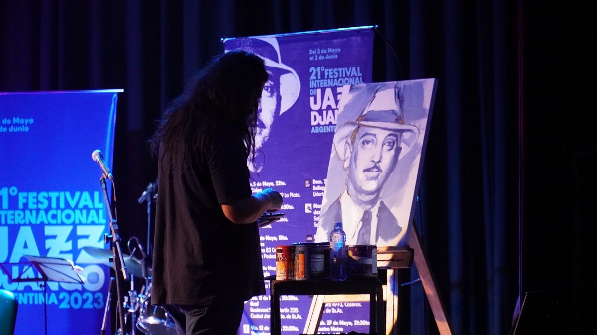 Por otro lado, el artista plástico y muralista, Leandro Fabián Íbalo realizó una pintura en vivo durante todo el concierto que expuso hacia el final.