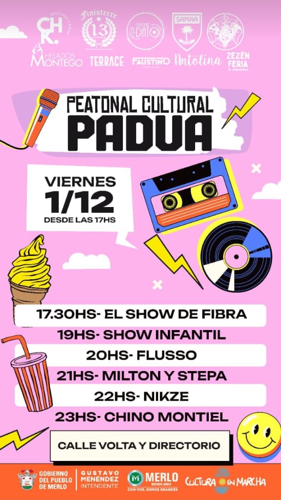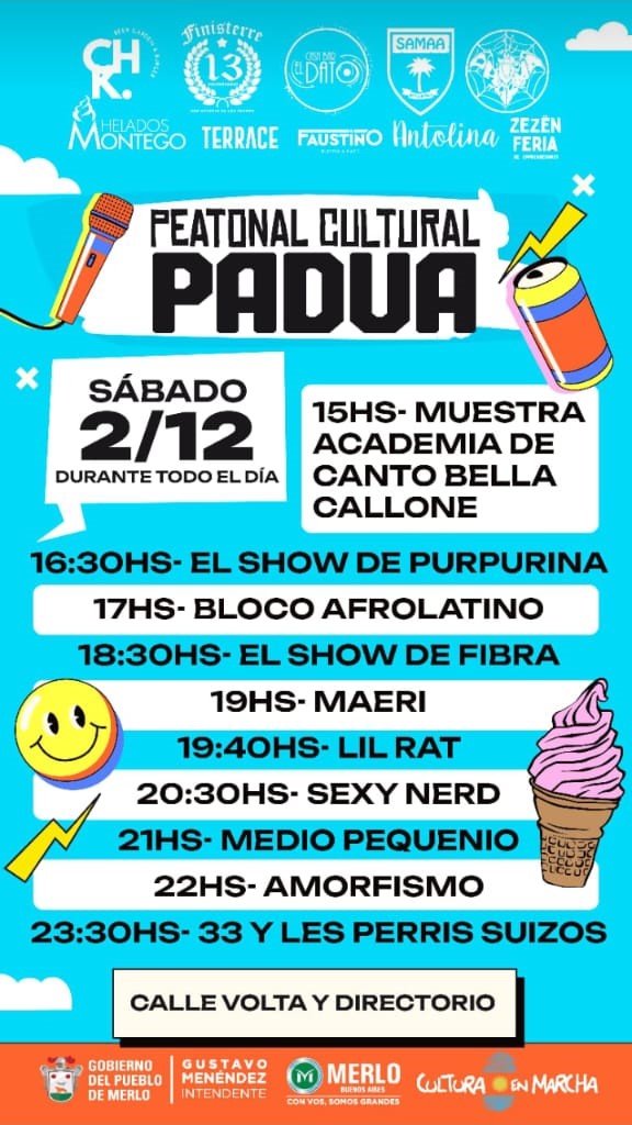 El Festival Peatonal Cultural Padua tendrá lugar el viernes 1/12 desde las 17 hs y sábado 2/12 durante todo el día en la calle Volta y Directorio.