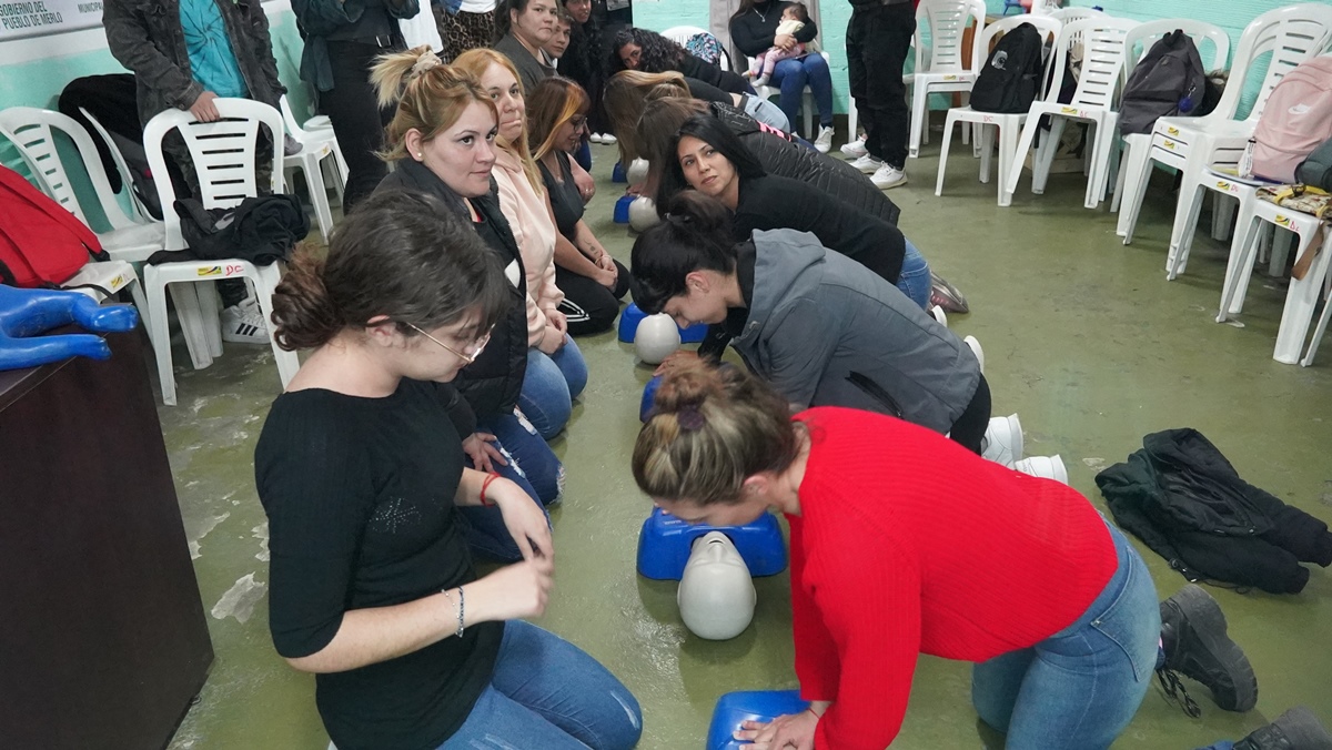 De esta forma, la primer parte de la clase se dicta a través de material audiovisual y el acompañamiento de un representante de defensa civil. La segunda mitad es la práctica, donde los merlenses aprenden a ejecutar técnicas de reanimación cardiopulmonar, indispensables para brindar auxilio ante emergencias, mientras se espera la llegada de profesionales de la salud.