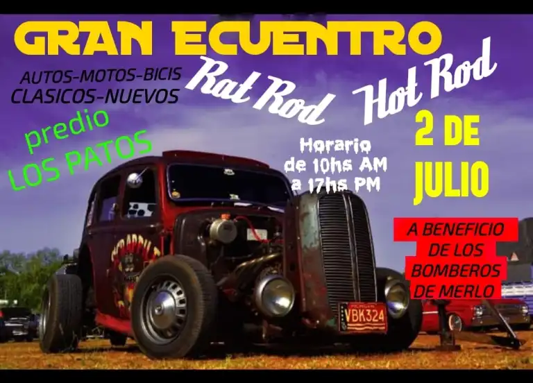 En el predio de “Los Patos”, este domingo 2 de julio, se llevará adelante una muestra de autos, organizada por “Oxidados del Oeste”, que tiene estipulado su inicio a las 10. A su vez, habrá, también, motos y autobombas clásicos. Si bien la entrada es a la gorra, la idea es donar lo recaudado para los bomberos.