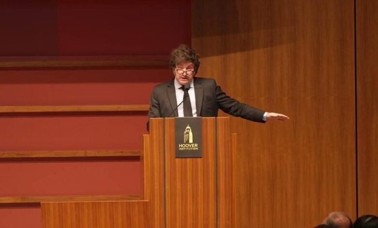 El presidente de la Argentina, Javier Milei, realizó una exposición en la Unversidad de Stanford donde fue invitado por el…