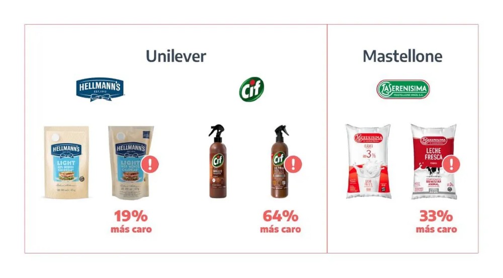 La Secretaría de Comercio multó a las empresas Unilever y Mastellone por comercializar simultáneamente productos idénticos en su contenido, con variantes mínimas en sus envases, y grandes diferencias de precio. pic.twitter.com/EEczLwe9a2